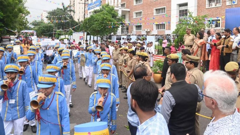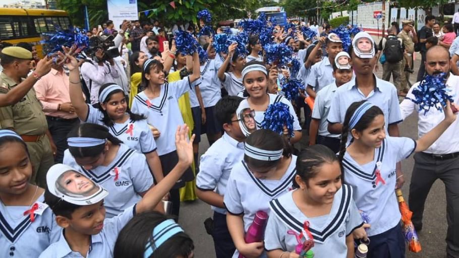 सीएमएस स्कूल के तीन हजार बच्चों ने परेड निकालकर किया स्वागत – फोटो : अमर उजाला