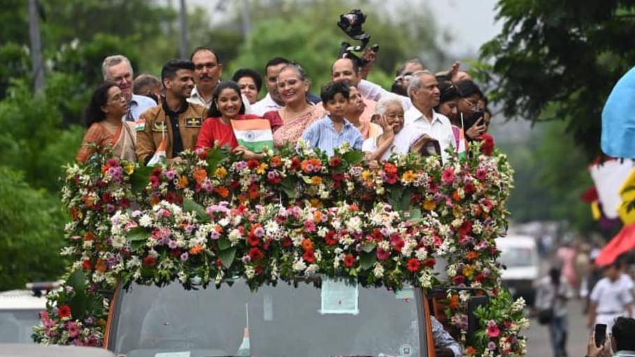 लखनऊ के लाल के नगर आगमन पर उनका स्वागत करने के लिए सड़कों पर जनसैलाब उमड़ पड़ा। इस दौरान उनके साथ गाड़ी पर सुषमा खर्कवाल, उनके माता-पिता, पत्नी और बेटा मौजूद रहा।
